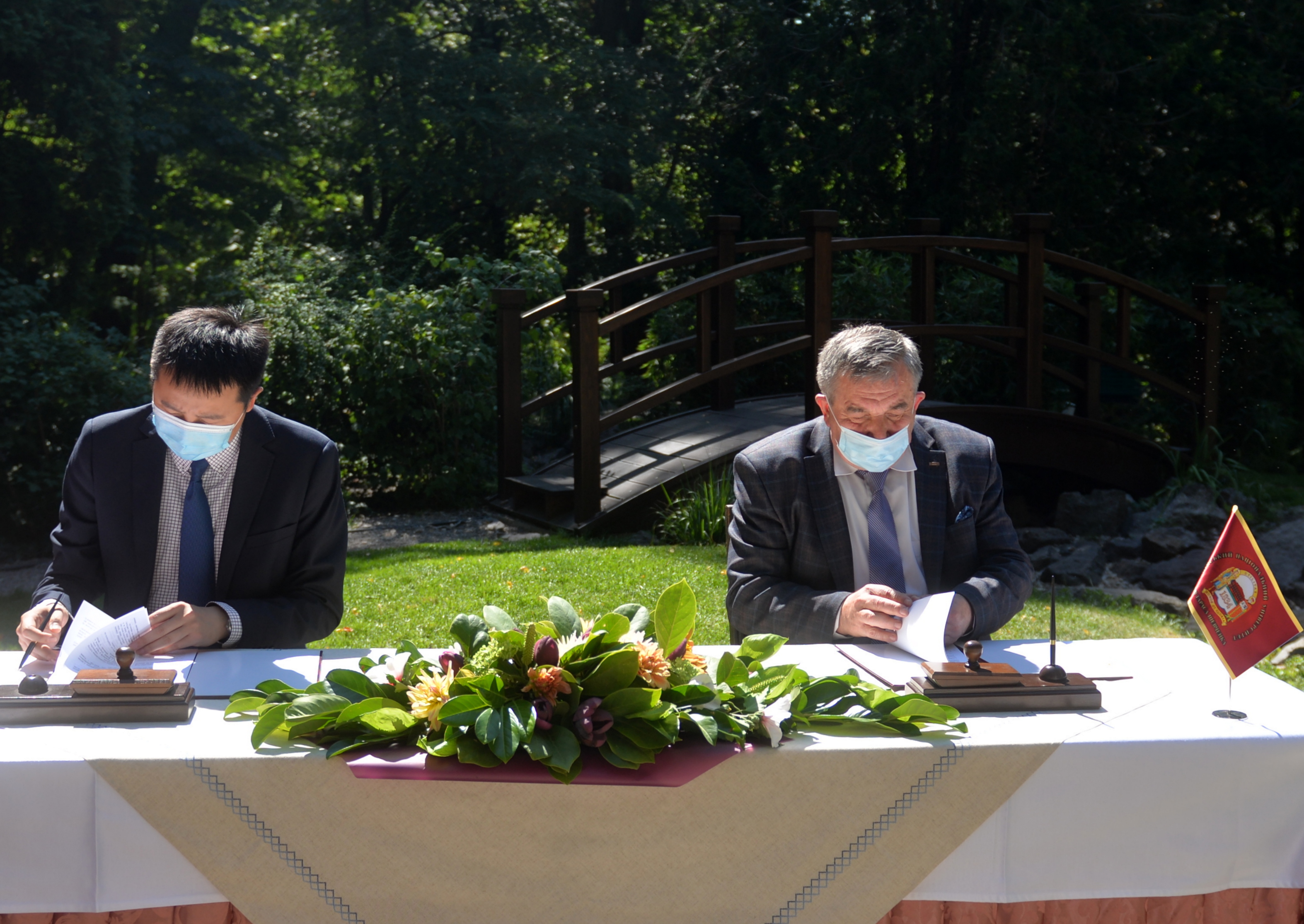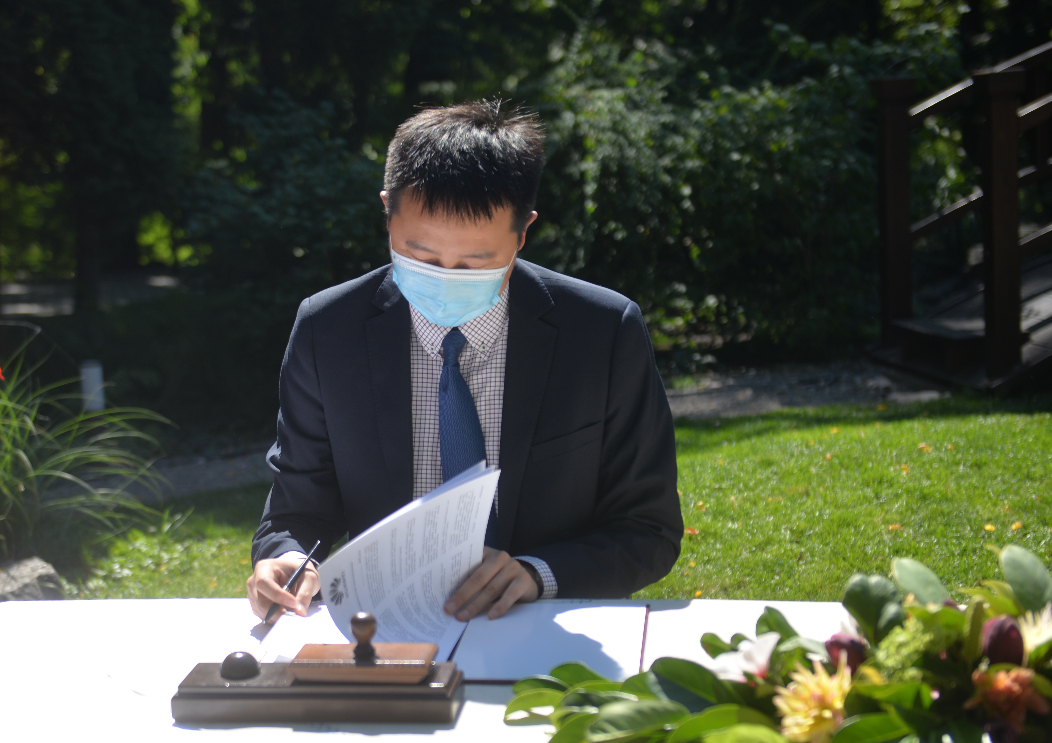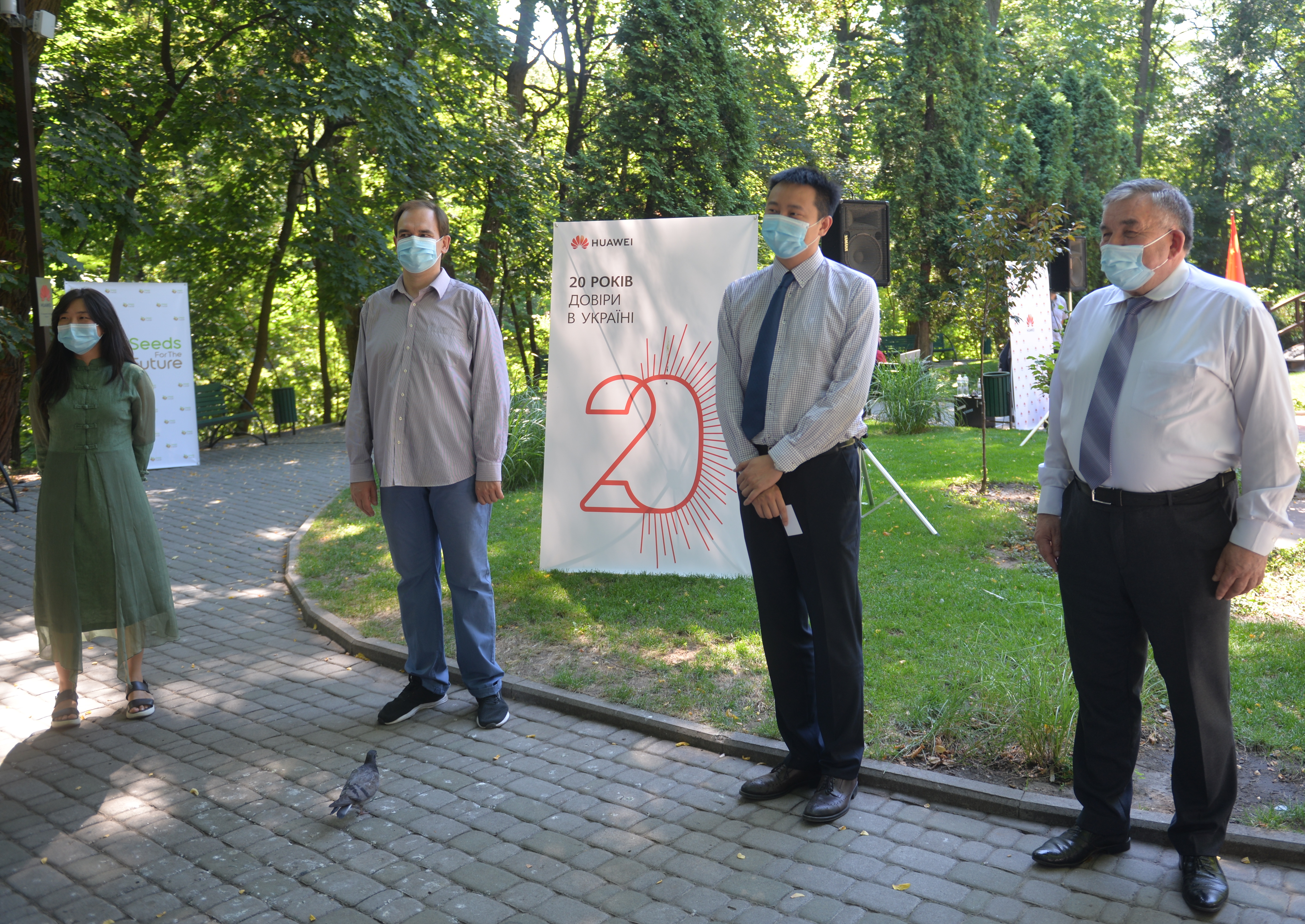 Урочисте підписання Меморандуму про взаєморозуміння між Київським національним університетом імені Тараса Шевченка й ТОВ «Хуавей Україна» відбулося 20 серпня 2020 року на «Поетичній галявині» університетського Ботанічного саду ім. О. В. Фоміна. У церемонії взяли участь директор ТОВ «Хуавей Україна» Ма Ці, проректори КНУ імені Тараса Шевченка Петро Бех та Олександр Рожко, проректор з наукової роботи Національної академії образотворчого мистецтва і архітектури Остап Ковальчук, художниця, викладачка китайського живопису Чи Шаотін, директорка Центру інноваційного розвитку Університету Світлана Березіна, декани й директори факультетів та інститутів КНУ, інші поважні гості. Відкриваючи захід, проректор Петро Бех зазначив: «Університет пишається багаторічною співпрацею із всесвітньовідомою компанією, а підписання Меморандуму є свідченням інноваційних підходів у сфері вищої освіти та об’єднання зусиль КНУ імені Тараса Шевченка й бізнесу в розвитку екосистеми інформаційно-комунікаційних технологій». Разом з тим директор ТОВ «Хуавей Україна» Ма Ці наголосив: «Розвиток цифрової інфраструктури посідає центральне місце в національній політиці різних країн світу щодо інформаційно-комунікаційних технологій (ІКТ). Завдяки співпраці університетів, бізнесу та професійних асоціацій нова цифрова інфраструктура може прискорити відновлення економіки, втілення в життя проєктів відкритих інновацій у інших сферах, зокрема, поєднання технологій та мистецтва, які спрямовані на цифрову трансформацію».