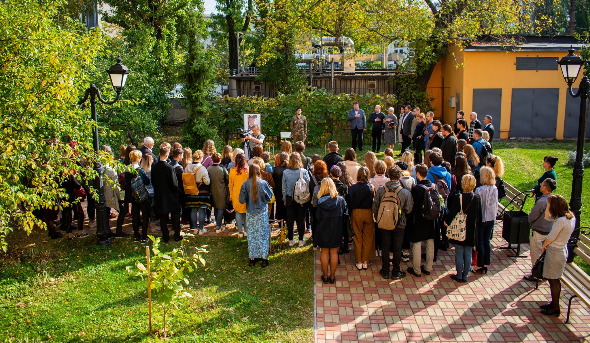 3 жовтня у 5-ті роковини з дня загибелі Святослава Горбенка, студента-японіста, який захищав Донецький аеропорт, в Інституті філології КНУ імені Тараса Шевченка відбувся мітинг-реквієм, у рамках якого посадили меморіальну сакуру у садку Інституту. Історія Святослава Горбенка – це приклад героїзму, який не вимірюється віком. Він пішов на фронт добровольцем, залишивши позаду кар'єру перекладача. Про це знає кожен в Шевченковому університеті, адже одна з аудиторій в Інституті філології іменована на його честь, найкращі студенти-сходознавці отримують стипендію імені Святослава Горбенка. Окрім цього його ім'я носить і Студентська гвардія КНУ, учасники якої гідно продовжують традиції студентів-звитяжців Київського університету. Щороку у жовтні увесь Університет вшановує пам'ять юного хлопця, який віддав життя за наше мирне майбутнє. «Його вчинок ми не маємо права забути, бо завдяки таким героям живе наша нація», – зауважив на мітингу в.о. директора Інституту філології Сергій Скрильник. «Коли ми садили сакуру, була тепла погода. Це є свідчення того, що від її споглядання у душі кожного буде тепло, а у пам'яті – спомин про Святослава», – продовжив Сергій Вікторович. «Подвиг Святослава є дороговказом для нас, прикладом свідомої громадянської позиції. Саме такі якості мають бути у всіх українців», – висловився голова Ради ветеранів Інституту філології Сергій Янчук. Слово на мітингу виголосив і Денис Антіпов, викладач корейської мови в Інституті філології, який теж добровольцем пішов у 2014 році захищати нашу Україну: «Святослав пішов у 2014 році, у критичний момент, коли потрібні були жертви таких людей – самовідданих. Наразі боротьба триває і йти на компроміси з ворогом ми не маємо права, бо вже заплачено неоціненним - життям. Тому мітинг є нагадуванням, що ми не маємо права поступитися, а наш шлях - йти вперед». Відкрив меморіальну пам'ятку коло посадженої сакури проректор КНУ імені Тараса Шевченка Володимир Бугров та викладач Денис Антіпов. Під час мітингу-реквієм молитву заспівали учасники «Роксоланії». Ушанувати пам’ять Скельда (позивний) прийшли заступники директора Інституту філології, викладачі, співробітники та студенти, представники Ради ветеранів КНУ, військовослужбовці. Насамкінець мітингу усі присутні заспівали Гімн України. Герої не вмирають...
