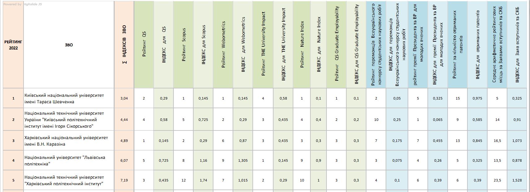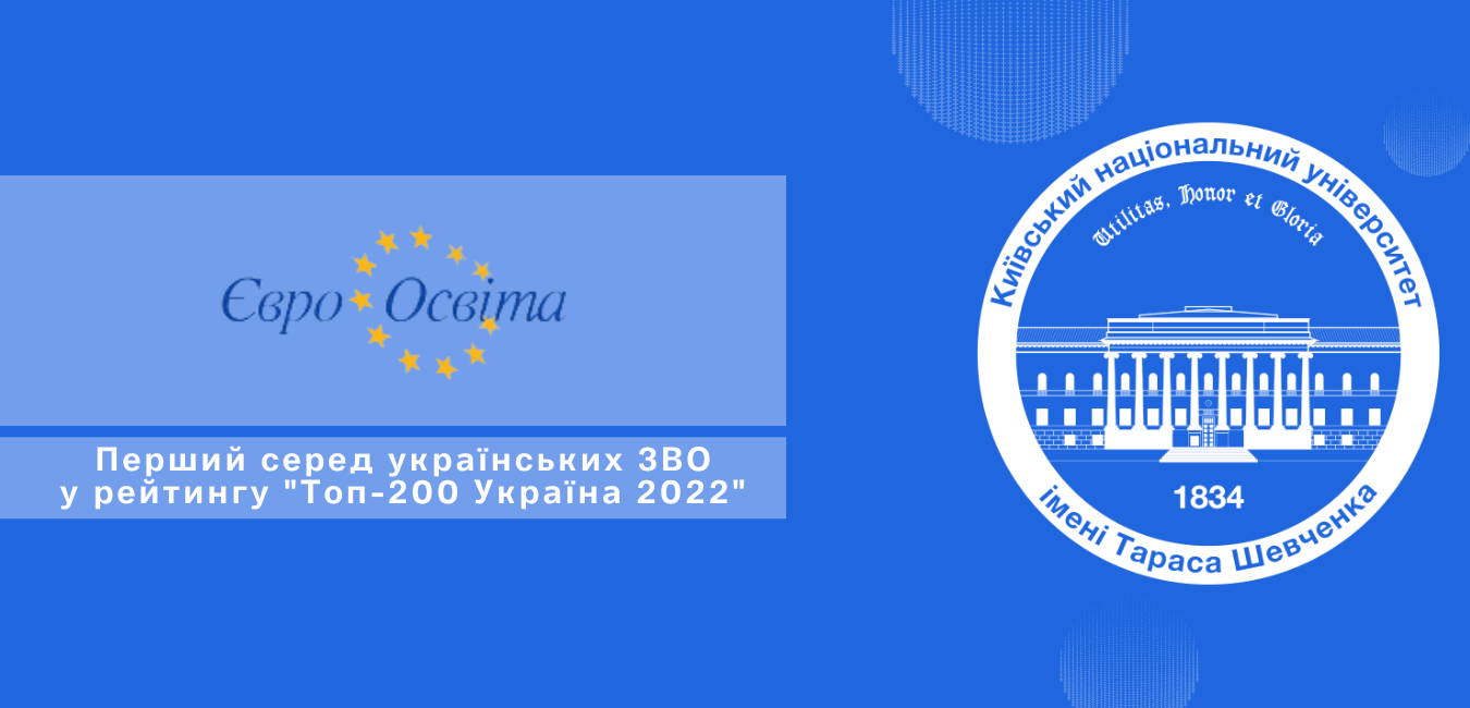 Київський національний університет імені Тараса Шевченка очолив цьогорічний академічний рейтинг закладів вищої освіти України «Топ-200 Україна 2022», представлений Центром міжнародних проєктів «Євроосвіта», в партнерстві з міжнародною групою експертів IREG Observatory on Academic Ranking and Excellence. При складанні цьогорічного рейтингу експерти враховували сучасні тенденції розвитку вищої освіти в Україні і світі, яка зазнає глибинних змін, у тому числі в результаті впливу пандемії COVID-2019 та повномасштабного воєнного вторгнення Росії в Україну. До уваги бралися напрацювання міжнародної Конференцієї IREG 2020 (Beijing Conference: "University rankings in the time of uncertainty", 20-21 жовтня 2020 року), IREG 2021 (Джидда, Саудівська Аравія: «Effects of Rankings on Community and Society», 15 і 16 листопада 2021 року) та Берлінські принципи, затверджені учасниками другої наради IREG (Берлін, Німеччина, 18-20 травня 2006 року).