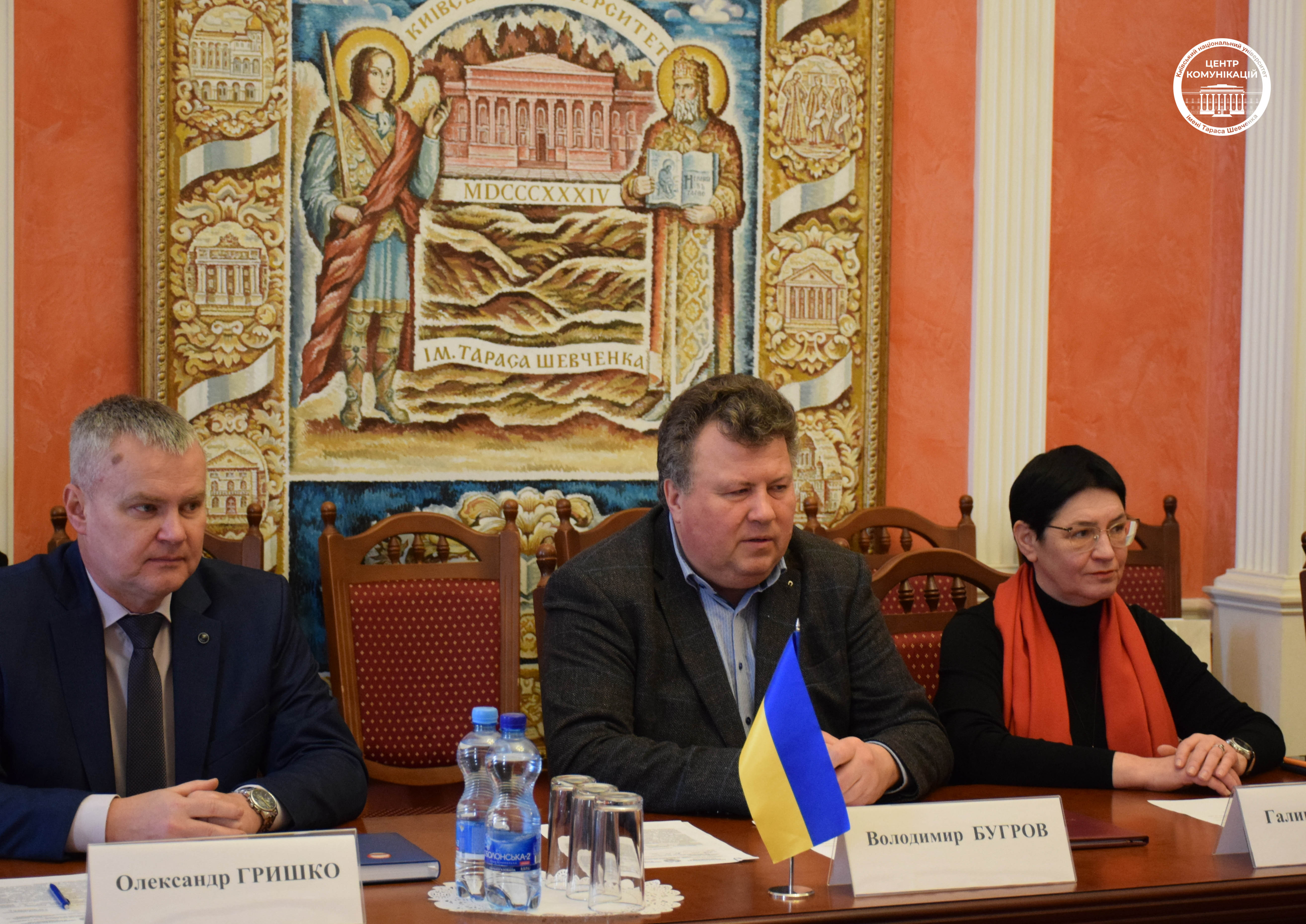 Володимир Бугров зазначив, що Університет має давні й усталені зв’язки з таджикистанськими закладами вищої освіти. Партнерами КНУ за двосторонніми угодами є Таджицький національний університет, Хорозький державний університет і Центр міжнародних програм при Міністерстві освіти Республіки Таджикистан. Ректор наголосив на відновленні довготривалих партнерських відносин, попри те, що після повномасштабного вторгнення рф в Україну серед здобувачів освіти в КНУ немає громадян Таджикистану. Розповідаючи високому гостю про історію Університету, навчальні ресурси закладу та його сучасні надбання, Володимир Бугров звернув особливу увагу на організацію освітнього процесу в умовах воєнного стану. «Для нас головним завданням є створення безпечних умов для навчання та викладання, – сказав очільник КНУ. – Нині в Університеті вирує студентське життя, не припиняється живе спілкування, на відміну від багатьох інших українських ЗВО, де очна форма навчання неможлива з огляду на безпекову ситуацію». Давлаталі Назрізода подякував за інформацію і відзначив великий потенціал КНУ імені Тараса Шевченка. «Таджикистан має з Україною 130 документів, які регулюють співпрацю між закладами вищої освіти обох країн. Було багато планів, намірів і напрацювань у цьому напрямі, та всьому зашкодила війна. Однак ми намагаємося підтримувати налагоджені зв’язки й не рвати ниточки, які нас поєднують», – сказав пан Посол. За словами високого гостя, в Таджикистані високо цінуються дипломи українських університетів. Водночас питання щодо визнання дипломів про вищу освіту вимагає врегулювання на рівні міжурядової угоди, і наразі робота над цим триває. «Ми зацікавлені в тому, щоб нашим студентам було вигідно отримувати українські дипломи, які б давали їм конкурентні переваги на міжнародному ринку праці», – зауважив Давлаталі Назрізода. Володимир Бугров розповів про позитивний досвід впровадження в Університеті освітніх програм з викладанням усіх дисциплін англійською мовою. Ректор навів у приклад минулорічний випуск іноземних студентів Інституту біології та медицини КНУ, які отримали дипломи магістрів за спеціальністю «Медицина», що визнаються в усьому світі. «Готові співпрацювати в тих напрямах, котрі цікаві таджикистанцям. Шукатимемо для ваших студентів найкращі можливості для отримання освіти високого рівня», – запевнив очільник Університету. За традицією, що склалася в Шевченковому університеті, Володимир Бугров запросив Надзвичайного та Повноважного Посла Республіки Таджикистан в Україні прочитати лекцію для студентів ННІ міжнародних відносин. Давлаталі Назрізода подякував за запрошення. Сторони домовилися про підтримання контактів та обмінялися пам'ятними подарунками. Від КНУ імені Тараса Шевченка на зустрічі були присутні: Олександр Гришко – помічник проректорки з науково-педагогічної роботи (міжнародне співробітництво), Галина Усатенко – завідувачка підготовчого відділення для іноземних громадян, Сергій Фокін – керівник Офісу по роботі з іноземними студентами, Надія Серьогіна – заступниця начальника відділу міжнародних зв’язків. Від Посольства Республіки Таджикистан в Україні у зустрічі взяв участь Лутфулло Гоібназаров – другий секретар посольства.