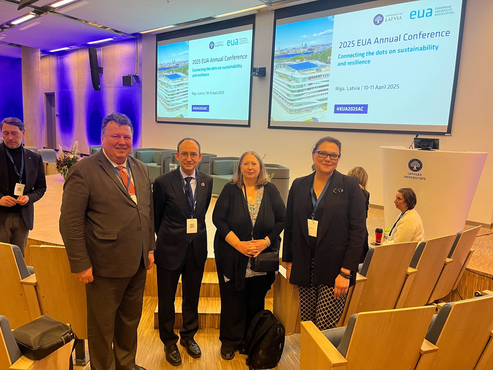 Делегація Київського національного університету імені Тараса Шевченка у складі ректора Володимира Бугрова та проректорки з міжнародного співробітництва Ксенії Смирнової взяла участь в Генеральній асамблеї та щорічній конференції Європейської асоціації університетів (EUA), що відбулася у Ризі на базі Латвійського університету 10 та 11 квітня 2025 року. Подія зібрала понад 370 учасників із 36 країн світу. Володимир Бугров взяв участь у засіданні Ради Європейської асоціації університетів напередодні конференції, де на прохання організаторів виступив із доповіддю про поточну ситуацію в Україні. Ректор і проректорка поділилися досвідом, який КНУ набув у часи повномасштабної війни: організація безпеки, перехід на дистанційне навчання, психологічна та матеріальна підтримка студентів і викладачів, мобілізація ресурсів – усе це дозволило зберегти безперервність освітнього процесу навіть під час обстрілів. «Криза – це не лише виклик, а й можливість для переосмислення. Ми побачили, наскільки важливими є гнучкість, швидкість прийняття рішень і довіра», – зазначив Володимир Бугров. Особливу увагу було зосереджено на ситуації в Україні: учасники сесії дізналися про роботу українських університетів у прифронтових регіонах, про виклики, що постають перед наукою та освітою в умовах війни, та про стратегії університетського управління у надзвичайних обставинах. Ці теми стали також предметом окремого круглого столу з урядування в університетах під час криз. Учасники обговорили досвід університетів Великої Британії у фінансовій кризі, Ісландії – у випадку кібератак, а також український досвід – життя університетів в умовах повномасштабної війни. Доповідь Володимира Бугрова викликала жвавий інтерес, особливо в частині розподілу повноважень і важливості чіткого планування в періоди турбулентності. Під час Генеральної асамблеї EUA, де Україну представляли також проректор Запорізького національного університету та ректор Маріупольського державного університету, було затверджено звіт про діяльність асоціації за 2024 рік та фінансовий план на 2025–2026 роки. Для українських ЗВО продовжено мораторій на сплату членських внесків. У межах конференції відбулася Генеральна асамблея Європейської асоціації університетів, під час якої було обрано нових членів Ради асоціації: