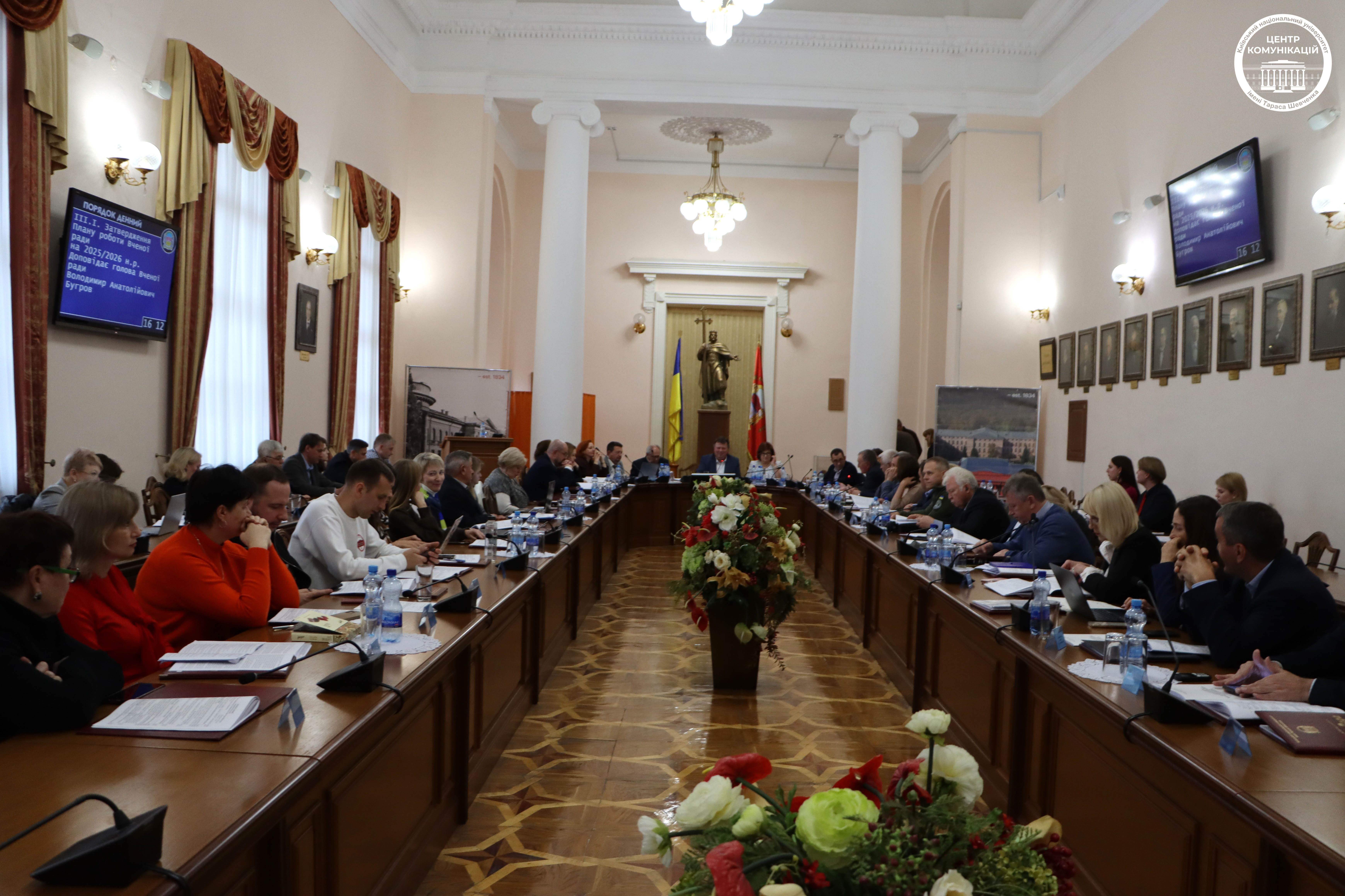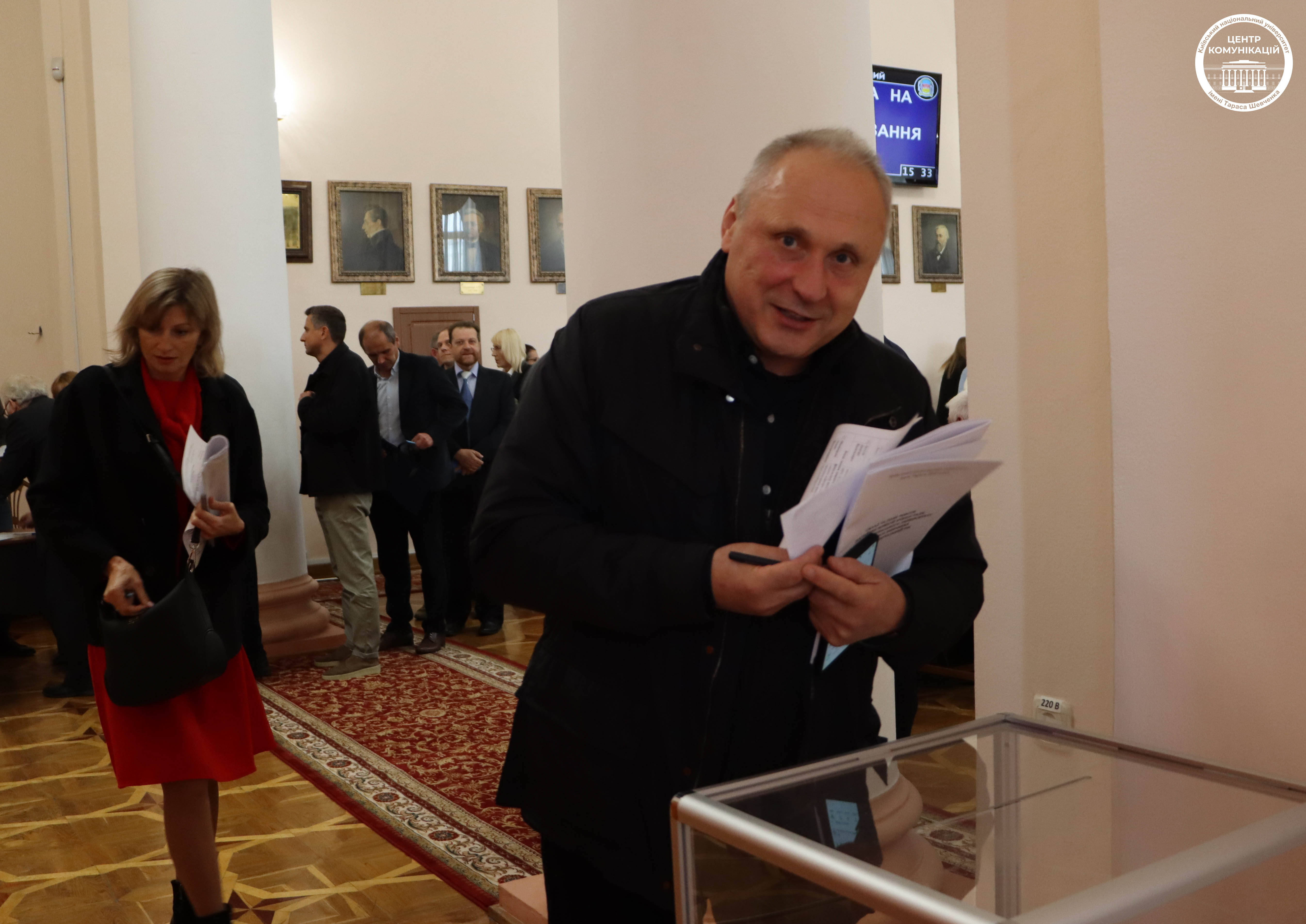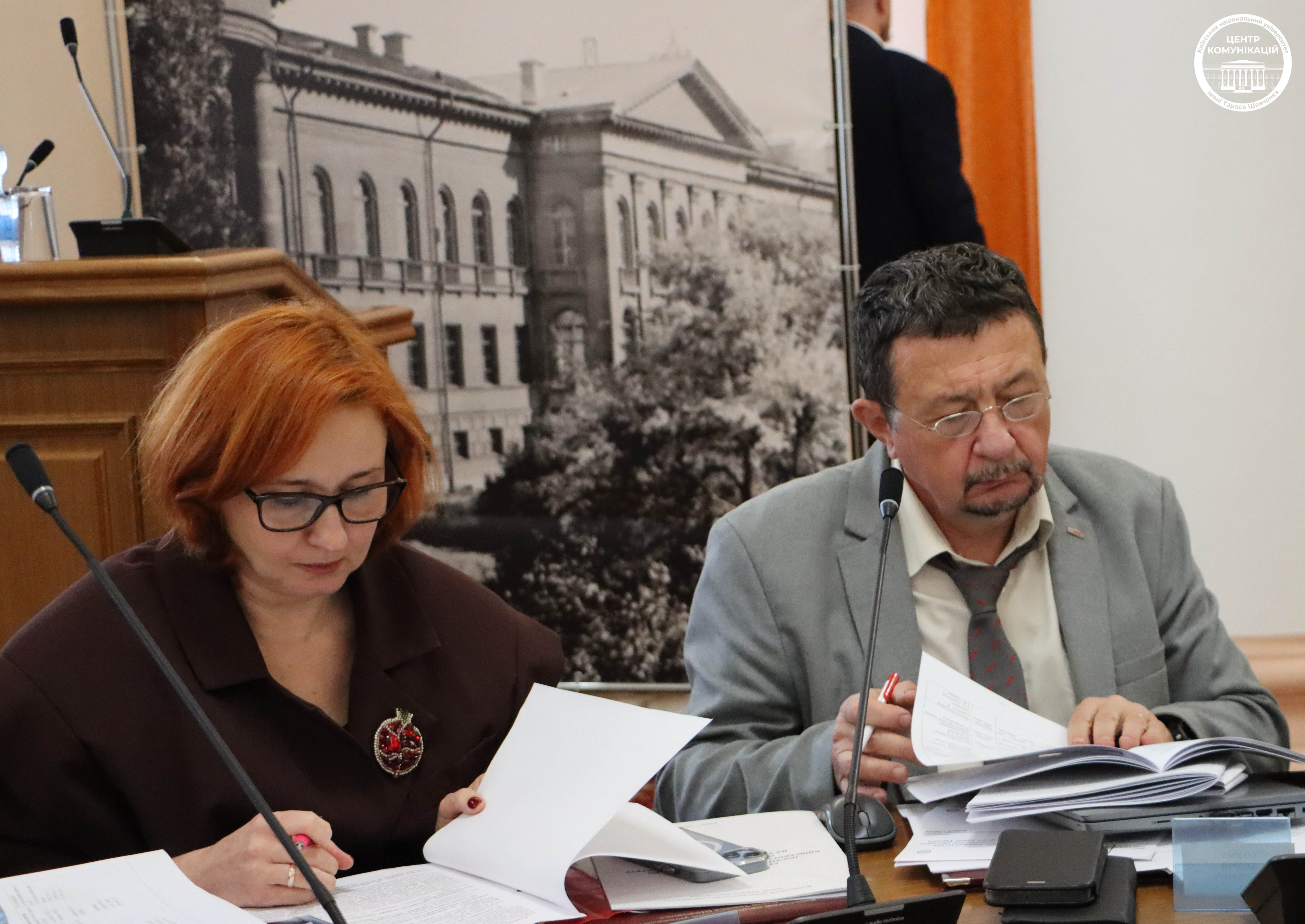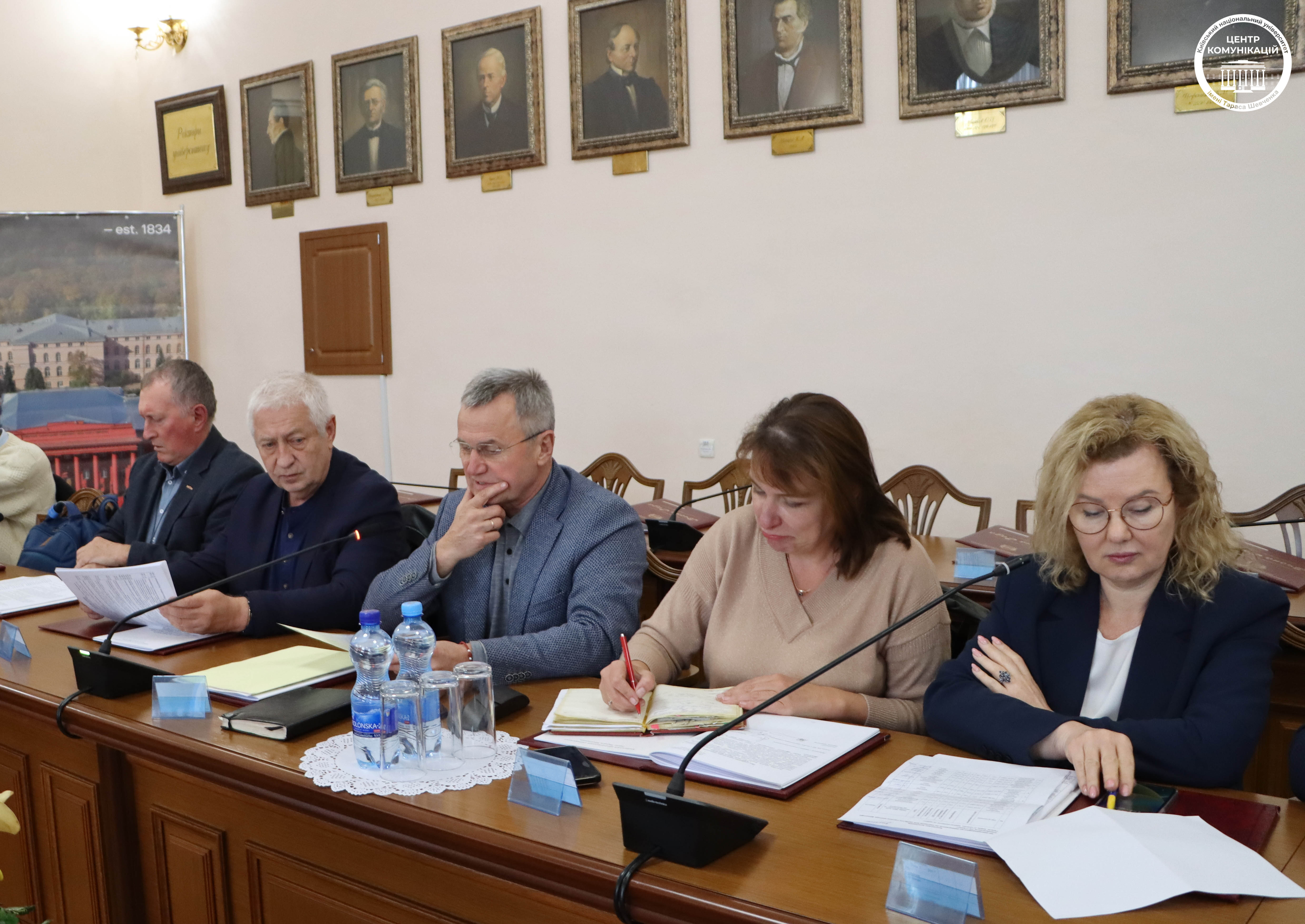 На черговому засіданні, що відбулося 6 жовтня, новообраний голова Вченої ради Володимир Бугров поінформував про роботу колегіального органу впродовж минулого навчального року і окреслив плани на 2025/2026 н.р.