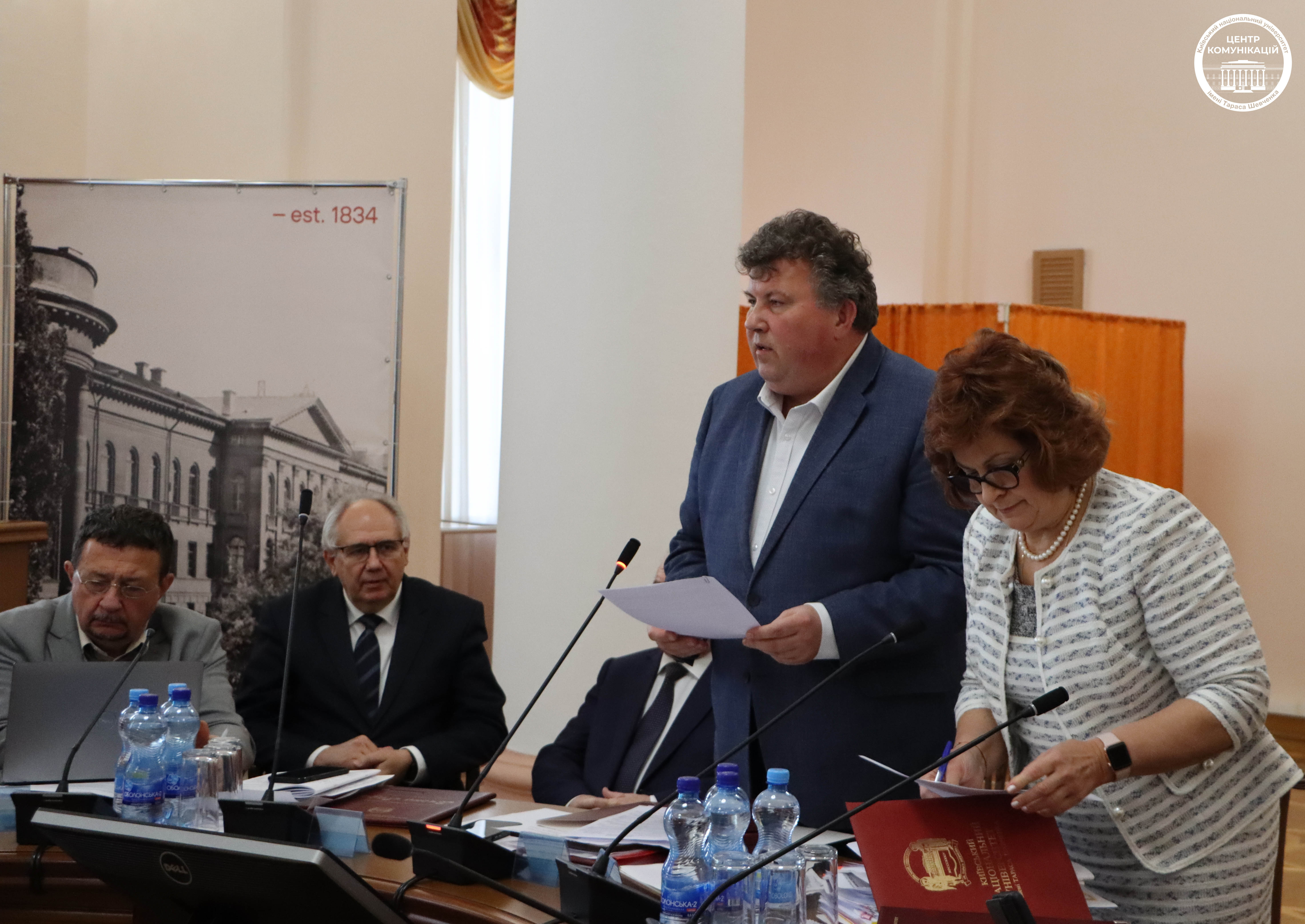 • присвоєння звання «Почесний доктор КНУ» (доповідачі – голова Постійної комісії з питань етики Галина Филюк, в.о. декана Історичного факультету Тарас Пшеничний);