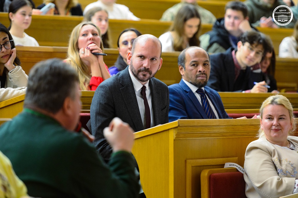 У своєму вітальному слові один із них зазначив: «Для мене велика честь разом з вами брати участь у написанні цього диктанту. Я вільно розмовляю українською, тому що вже 11 років в Україні, а оскільки наші мови мають близько 80% спільної лексики, мені це було не складно. Наші мови формувалися на спільній базі, наші народи багато в чому є спорідненими впродовж історії, а сьогодні ми разом змагаємося за вашу і нашу свободу. Мова – це теж зброя, і мова має значення. Народ, який має свої національні та культурні цінності, буде незалежний».