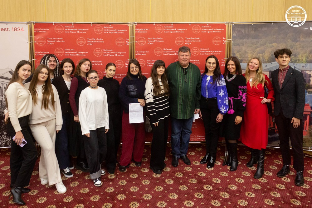 Представники Полку вручили ректорові КНУ Володимиру Бугрову подяку та знамено Полку як символ спільної боротьби «за вашу і нашу свободу» та мову як маркер ідентичності.