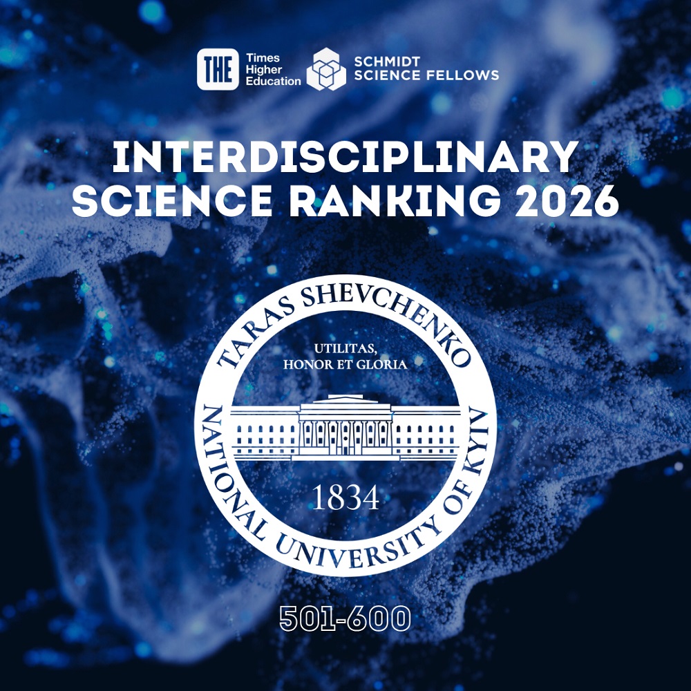 Київський національний університет імені Тараса Шевченка представлений у новому виданні Міждисциплінарного наукового рейтингу Times Higher Education Interdisciplinary Science Rankings 2026, який цього року охоплює 911 закладів освіти із 94 країн світу. За результатами оцінювання КНУ підтвердив свою присутність у глобальному академічному просторі та став другим серед українських ЗВО, представлених у рейтингу, увійшовши до групи 501–600 найкращих університетів світу. Загалом до цьогорічного видання включено 15 українських закладів вищої освіти. ISR 2026 – це глобальний рейтинг, створений THE у співпраці зі Schmidt Science Fellows та покликаний оцінити внесок університетів у міждисциплінарні дослідження. Методологія рейтингу ґрунтується на аналізі повного циклу міждисциплінарних досліджень – від фінансування до їх наукового впливу. Оцінювання включає одинадцять індикаторів у трьох блоках: