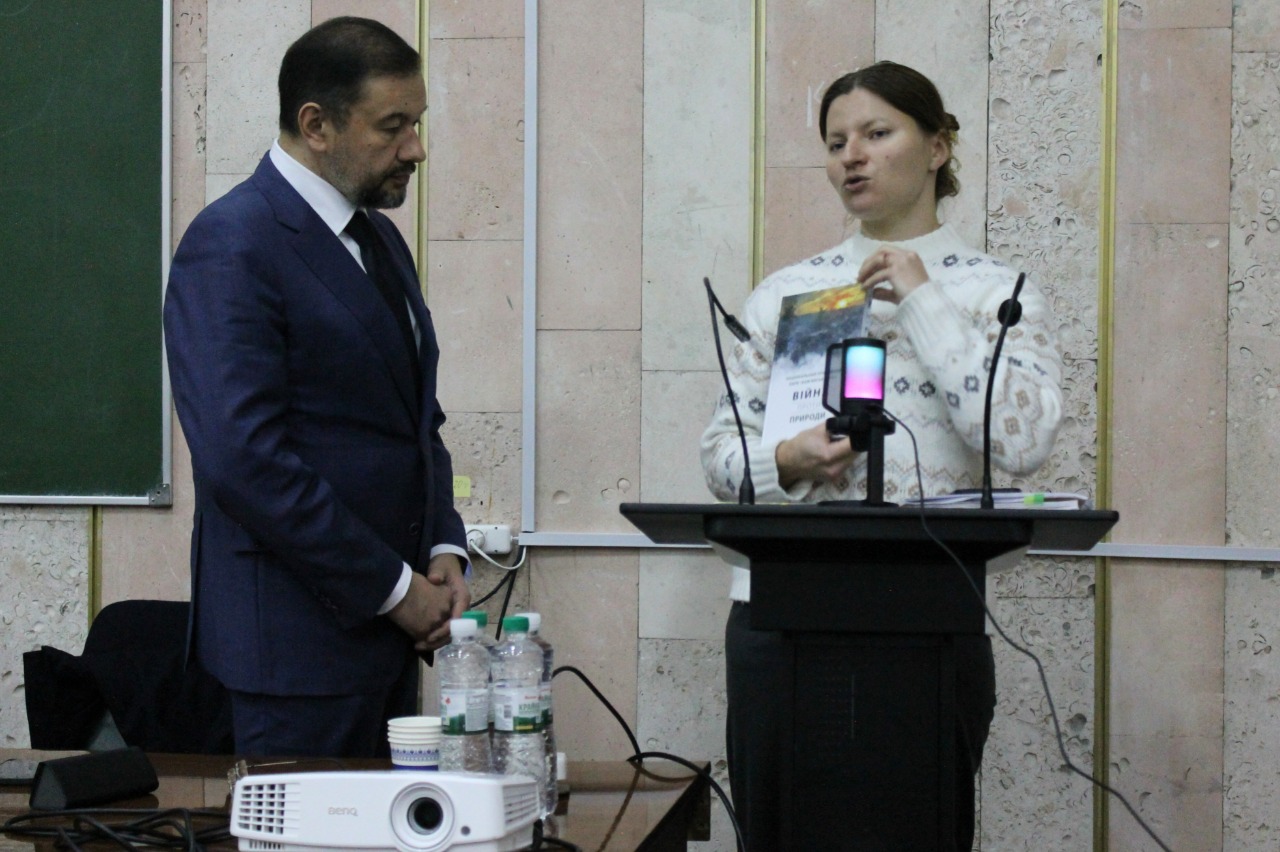 У ННЦ «Інститут біології та медицини» КНУ імені Тараса Шевченка 27 листопада відбулась публічна лекція голови Комітету Верховної Ради України з питань екологічної політики та природокористування Олега Бондаренка. Тема зустрічі – «Роль екологів у зеленому відновленні України». Подію організувала Міжнародна благодійна організація «Екологія-Право-Людина», а інтерес до неї виявився настільки великим, що аудиторія була заповнена не лише здобувачами спеціальності «Екологія», а й студентами біологічних та медичних напрямів. У своїй доповіді спікер окреслив ключові виклики та завдання екологічної політики держави в умовах війни. Він наголосив на руйнівному впливі бойових дій на довкілля, зокрема на промислові зони, ґрунти, водні ресурси та природні екосистеми. Серед інших важливих тем – управління відходами, роль промисловості у формуванні забруднення, а також зобов’язання України в межах євроінтеграційного курсу. Значна частина виступу була присвячена гармонізації українського природоохоронного законодавства з нормами ЄС та реформам, над якими Комітет працює з 2019 року: від модернізації системи контролю промислових викидів до оновлення підходів у сфері надрокористування та кліматичної політики. Після лекції студенти мали можливість поставити запитання. Під час жвавої дискусії йшлося про майбутнє природно-заповідного фонду, перспективи реформування Міністерства захисту довкілля та природних ресурсів, реалізацію закону про території Смарагдової мережі та співпрацю державних інституцій із громадським сектором. Окрему увагу учасники приділили проблемам збереження природних територій у прифронтових регіонах. До обговорення долучилася і представниця МБО «Екологія-Право-Людина» Катерина Полянська. Вона розповіла про можливості професійної взаємодії екологів та юристів, а також представила освітні та волонтерські програми ЕПЛ. Зокрема, у 2025 році в межах співпраці з кафедрою екології та зоології ННЦ було запроваджено нову навчальну дисципліну для магістрантів – «Збереження природних оселищ і видів дикої флори та фауни». Захід відбувся в межах діяльності Діалогового майданчика громадянського суспільства, органів влади та наукової спільноти