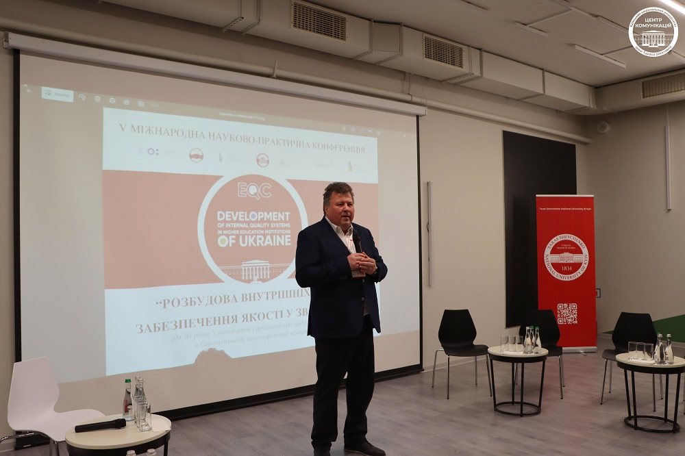 Ректор Київського національного університету імені Тараса Шевченка Володимир Бугров розгорнув тему якості у ширшій площині – як мережі взаємодій між університетами, регіонами й суспільством, у якій кожна інституція займає своє місце: регіональний лідер, класичний університет, переміщений ЗВО чи технічний заклад з багаторічною історією.