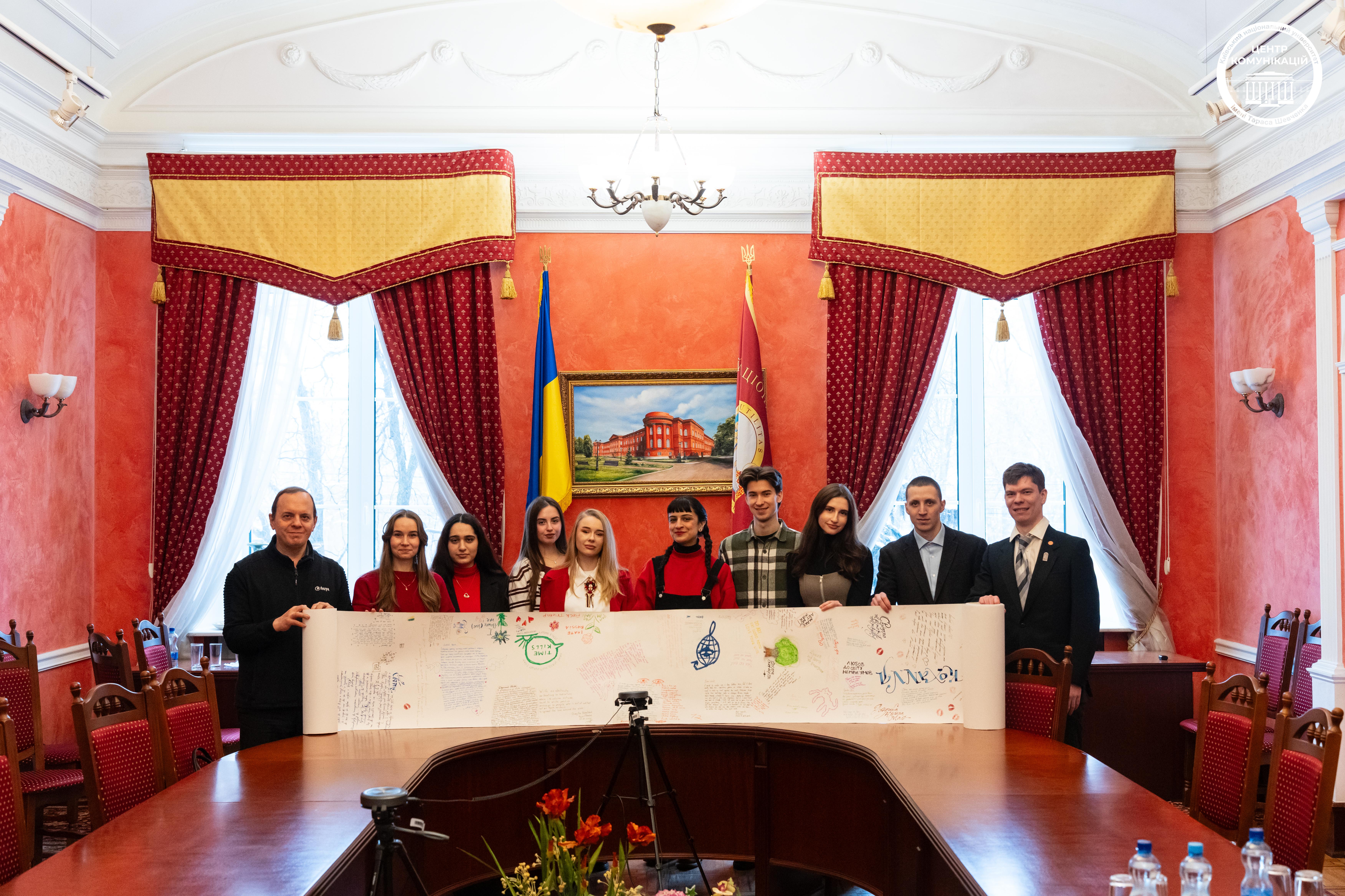У КНУ написали листа до світу в межах однойменного мистецького проєкту «The World Letter», започаткованого французькою художницею Cocovan. Це 630-метрове любовне послання, до створення якого вже долучилися понад 25 тисяч мешканців 50 міст планети. У заледенілому воєнному Києві молоді українці теж закарбували своє уявлення про любов як формулу світової гармонії.
