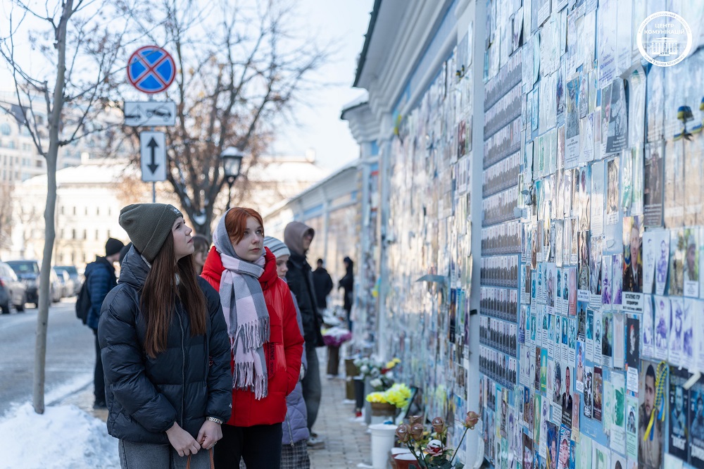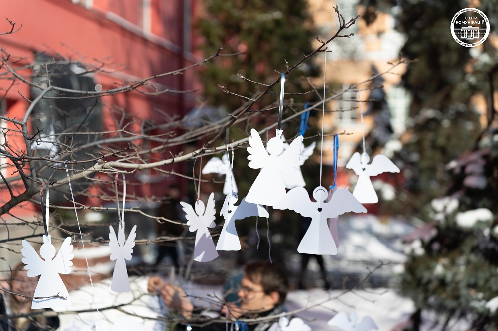 Простір пам’яті Героїв Небесної Сотні біля зали вченої ради Головного корпусу зароджувався стихійно у 2014 році – як потреба у місці скорботи та вдячності тим, хто йшов під кулі, своїм захистом маючи синьо-жовте знамено. Згодом він став упорядкованим осередком пам’яті для всієї університетської спільноти. Саме на цьому місці університетська родина зібралася 20 лютого для спільної пам’яті. «На той час нам здавалося, що годі знайти більшого горя і втрат, ніж Небесна Сотня. Що така ціна є надзвичайно високою. Але вони були лише першими героями у битві, що триває. Тоді, у лютому 2014-го, вони не дозволили знищити Україну. За тією перемогою були інші. А попереду – остаточна», – наголосила у своєму зверненні проректорка КНУ Олена Добржанська. Далі учасники заходу долучилися до Всесвітньої тихої акції «Ангели пам’яті». Паперовими білими янголами – символами пам’яті й правди – «розцвіла» магнолія біля Червоного корпусу як знак вдячності та шани Героям Небесної Сотні. Після цього шевченківці символічною ходою рушили до Стіни пам’яті Героїв біля Михайлівського Золотоверхого собору, де вшанували загиблих хвилиною мовчання та покладанням квітів. Подвиг Небесної Сотні продовжується у стійкості сучасних захисників України. Усвідомлення, що Героїв уже далеко не сотні, є болісним, але саме образ Небесної Сотні залишається моральним орієнтиром, що веде крізь темні часи та не дозволяє зневіритися. Упродовж дня в навчальних підрозділах університету відбулися символічні хвилини мовчання, акції із запалюванням свічок пам’яті, тематичні зустрічі та дискусії. Цими днями університетська спільнота згадує Майдан – велику людську відвагу, громадянську самовідданість і силу духу тих, кому Україна завдячує своєю Незалежністю. Слава Безсмертним Героям Небесної Сотні.
