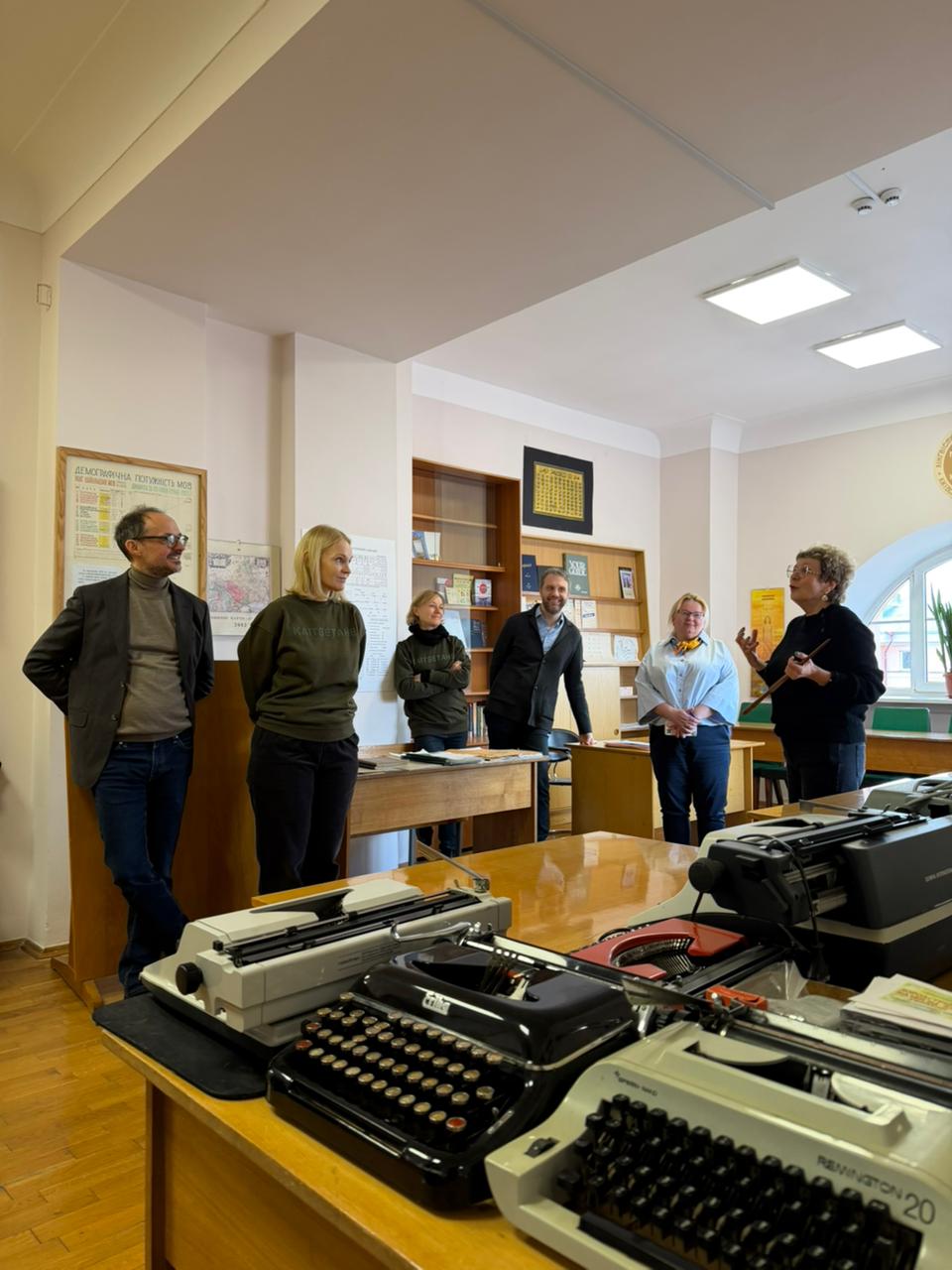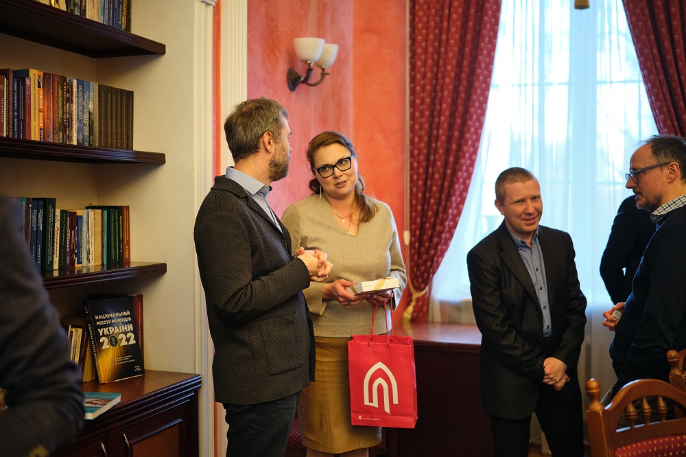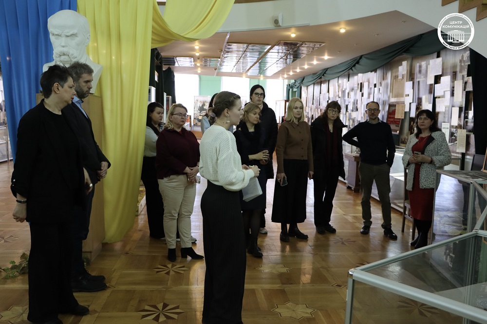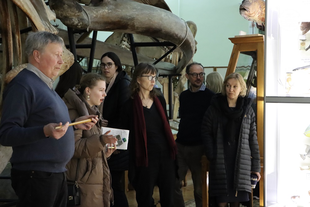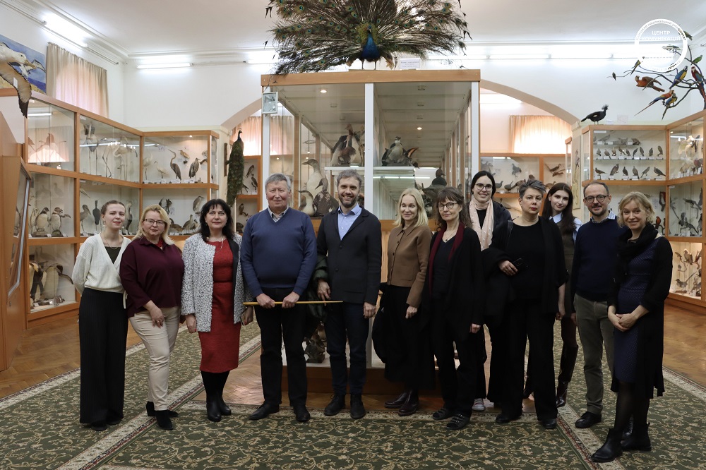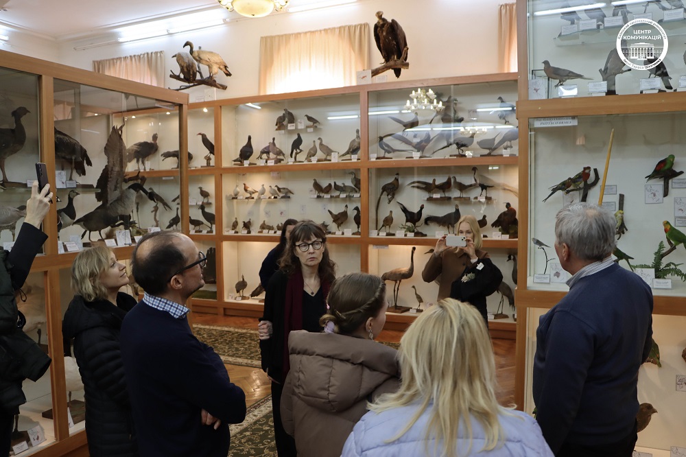 У складі делегації – директор Школи гуманітарних наук Таллінського університету, доцент Уку Лембер, адміністративний керівник Тер’є Каламеес, а також провідні науковці у галузях літературознавства, соціології, лінгвістики та семіотики, зокрема професори Епп Аннус, Анна Верщик, Даніеле Монтічеллі та Райлі Нугін. З української сторони в заходах взяли участь ректор КНУ Володимир Бугров, проректорка з міжнародного співробітництва Ксенія Смирнова, представники відділу міжнародних зв’язків, а також представники ННІ філології, Філософського, Історичного факультетів, Факультету соціології та Факультету психології. Програма візиту розпочалася з ознайомчої екскурсії Головним навчальним корпусом Університету та відвідування Музею історії КНУ. Окрему увагу було приділено експозиції, присвяченій пам’яті загиблих Героїв – студентів і випускників Університету, які віддали життя за Україну. Делегація ознайомилася з виставкою та вшанувала їхню пам’ять. Екскурсію університетом провела директорка Музею історії Університету Людмила Круглова. Також делегація відвідала Зоологічний музей КНУ – один із найстаріших природничих музеїв України, який є важливою науково-освітньою базою Університету. Екскурсію музеєм провів Олександр Зиков. Гості ознайомилися з експозицією, що налічує тисячі видів тварин з різних куточків світу, зокрема рідкісні та зникаючі види, а також дізналися про роль музею у навчальному процесі та наукових дослідженнях. Під час офіційної частини відбулася зустріч делегації з ректором Університету за участю представників інститутів і факультетів КНУ. Сторони обговорили сучасний стан і перспективи розвитку співпраці між закладами, зокрема можливості реалізації спільних дослідницьких проєктів, академічних обмінів, а також розширення міждисциплінарної взаємодії у сфері гуманітарних наук. Окрему увагу було приділено потенційним напрямам співпраці у сферах соціології, культурних студій, перекладознавства та історії Центрально-Східної Європи. Другий день візиту був присвячений ознайомленню гостей із науково-культурною інфраструктурою Університету. Делегація відвідала Ботанічний сад імені академіка О.В. Фоміна – разом із директоркою Мариною Гайдаржи оглянули один із найстаріших ботанічних садів України, що поєднує науково-дослідну діяльність із збереженням біорізноманіття та є важливим осередком екологічної освіти. Особливу зацікавленість гостей викликало відвідування оранжереї, де вони ознайомилися з унікальними колекціями тропічних і субтропічних рослин та умовами їх збереження. Також делегація відвідала Міжфакультетський лінгвістичний науково-навчальний музей, де було представлено експозиції, присвячені розвитку мовознавства, історії мов і культур, а також сучасним дослідженням у галузі лінгвістики. Екскурсію музеєм провела Ірина Голубовська. Гості мали змогу ознайомитися з унікальними матеріалами, що ілюструють різноманіття мов світу та еволюцію мовних систем, що сприяло обговоренню перспектив міждисциплінарної співпраці у сфері мовних і культурних студій. Завершальним етапом візиту стала лекція професора Даніеле Монтічеллі в Навчально-науковому інституті філології на тему «Картографуючи переклад: бази даних, мережевий аналіз та історія непоміченого», яка викликала значний 