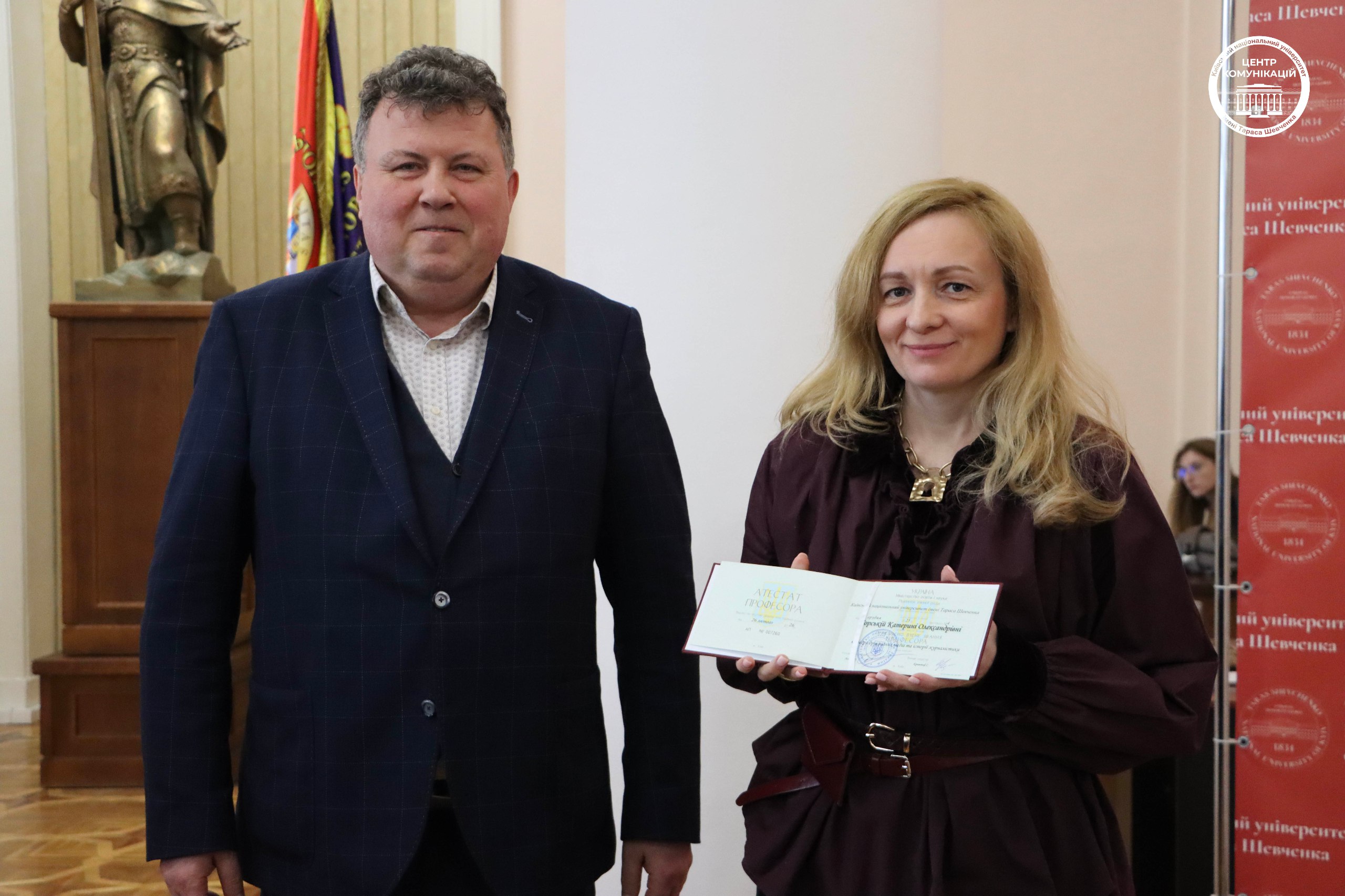 Відзнаками Міністерства освіти і науки України нагороджено працівників Українського фізико-математичного ліцею КНУ: Нагрудний знак «Відмінник освіти» отримав учитель фізичної культури Сергій Данильчук. Грамотами МОН України нагороджено заступницю директора з навчальної роботи Людмилу Андрущенко та учительку фізики Ганну Манжару. Подяки Міністерства отримали учителька хімії Ольга Радченко та вихователька ліцею Ірина Трофимчук. Атестати професора отримали: Євген Бондаренко – кафедра алгебри і комп’ютерної математики, Механіко-математичний факультет; Наталя Версаль – кафедра страхування, банківської справи та ризик-менеджменту, Економічний факультет; Катерина Горська – кафедра друкованих медіа та історії журналістики, ННІ журналістики; Максим Лазоренко – кафедра молекулярної фізики, Фізичний факультет; Михайло Ледней – кафедра теоретичної фізики, Фізичний факультет; Ірина Маслікова – кафедра етики, естетики та культурології, Філософський факультет; Вадим Павленко – кафедра енергетичної хімії, Хімічний факультет; Олена Рижко – кафедра редакційно-видавничих технологій і продюсування, ННІ журналістики; Ярослав Соболевський – кафедра історії філософії, Філософський факультет; Оксана Тананайко – кафедра аналітичної хімії, Хімічний факультет; Тетяна Шевченко – кафедра вірусології, ННЦ «Інститут біології та медицини»; Антоніна Шолойко – кафедра страхування, банківської справи та ризик-менеджменту, Економічний факультет. Також Подякою КНУ імені Тараса Шевченка за активну участь в організації та проведенні Всеукраїнського комплексного змагання для школярів «ФізматКолайдер - 2026» нагороджено студента 2 курсу ННІ високих технологій Кирила Трофименка.
