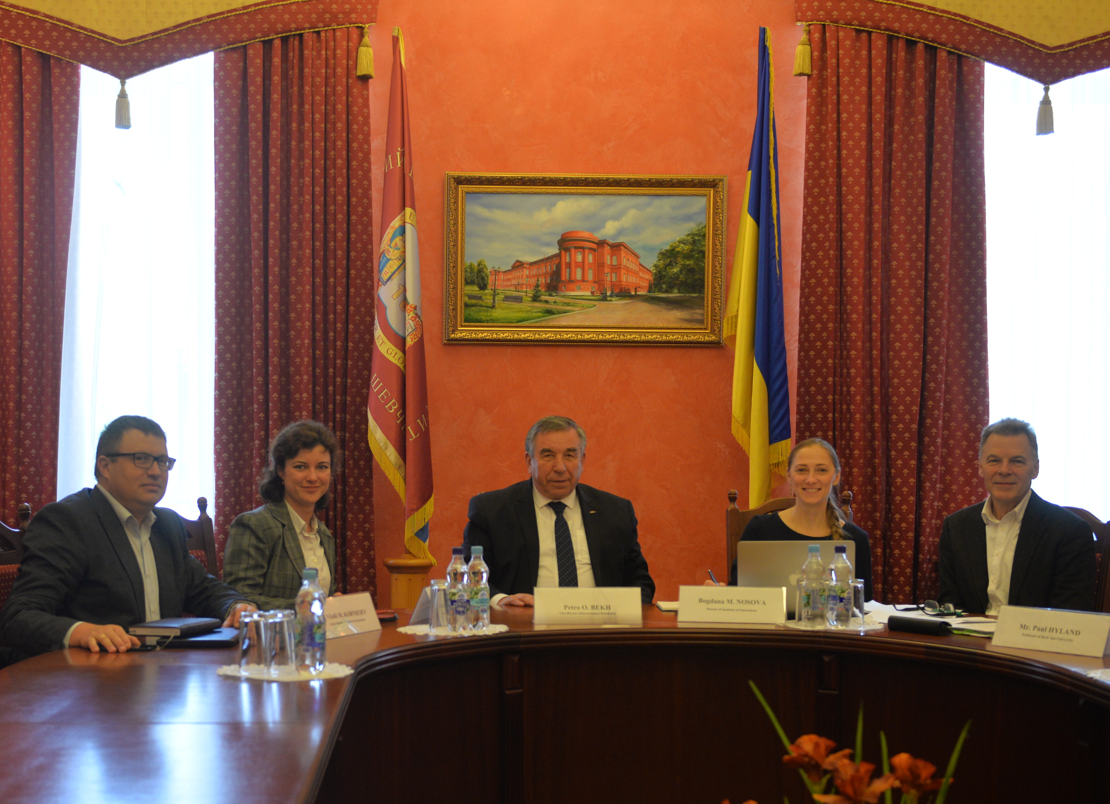 27 вересня в Головному корпусі КНУ імені Тараса Шевченка відбулася зустріч з професором Полом Хайлендом (Університет Спа, місто Бат, Велика Британія). Професор є координатором міжнародного проекту за програмою Європейського союзу Еразмус+ КА2 (секція: Capacity Building in Higher Education – Розвиток потенціалу у вищій освіті) DESTIN – Journalism Education for Democracy in Ukraine: Developing Standards, Integrity and Professionalism – Журналістська освіта задля демократії в Україні: розробка стандартів, доброчесність та професіоналізм. Метою візиту стала зустріч з адміністрацією Київського університету та DESTIN командою Університету задля обговорення процесу виконання проекту. Від КНУ у зустрічі взяли участь проректор з науково-педагогічної роботи (міжнародні зв’язки) Петро Бех, заступник директора Інституту журналістики Віталій Корнєєв, доцент Інституту журналістики Богдана Носова, асистент Інституту журналістики Леся Ярошенко. DESTIN – Journalism Education for Democracy in Ukraine: Developing Standards, Integrity and Professionalism – Журналістська освіта задля демократії в Україні: розробка стандартів, доброчесність та професіоналізм. Тривалість проекту: 36 місяців. Офіційний старт: 15 листопада 2018 р. Завершення: 15 листопада 2021 р. Загальний бюджет: 798 тисяч 470 євро. Проект спрямований на вдосконалення журналістської освіти – оновлення навчальних планів і програм з журналістики в Україні (бакалаврат+магістратура), їх наближення до стандартів ЄС, покращення працевлаштування студентів-журналістів, їхньої міжнародної мобільності та поширення медіаграмотності в суспільстві. Учасники: 20 європейських установ з-поміж яких 10 українських університетів, урядові й неурядові організації України, а також університети й неурядові організації з Австрії, Великої Британії, Ірландії, Нідерландів, Польщі, Швеції, а саме: